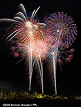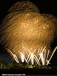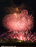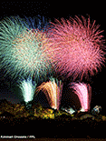 プログラムは104番までと密度は十分。昨年は感じなかったが、今年は同じ傾向の玉の繰り返しが多かったかな。楽曲は聴こえないものの4回あるミュージックスターマインはコンパクトだし短時間だけれど4回全て違う玉構成。えびす講の1/3もない幅で、派手に下からの星打ちを展開してあいかわらず見応えがあった。