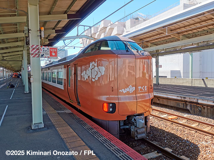 新幹線に乗るのは2019年以来。乗ってみるとのぞみ車両の速いこと。外国人が感激するわけだ。東海道新幹線開業以来、東京から新大阪間にかかっていた所要時間は、今では岡山まで行けてしまう。岡山からは在来線特急の「やくも」で向かうのだが、入線したそれを見て、鉄道には全く興味ない私がその車両に惹かれた。八重雲をデザインした茶色の車両はなかなかいいじゃん。