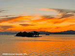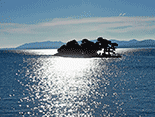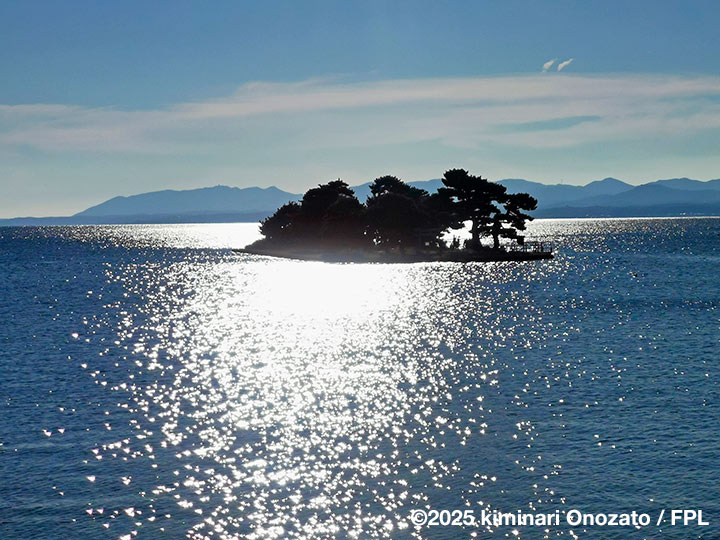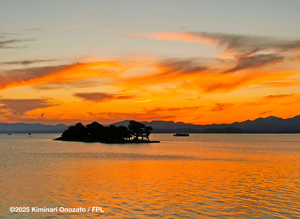 焦がされるものの、ちょうど嫁が島の裏に沈んでゆく夕陽はやがて空と湖面を染めて心が和む。