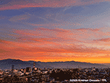 後日ネットでさまざまな写真を見ると、私の居たところよりもっと視点が高い場所(もっと間合いが遠くなるが)なら、たなびいていた発煙帯のさらに上から覗くような格好で少しスッキリ見えたみたい。雲海を上から見る感じか。