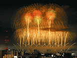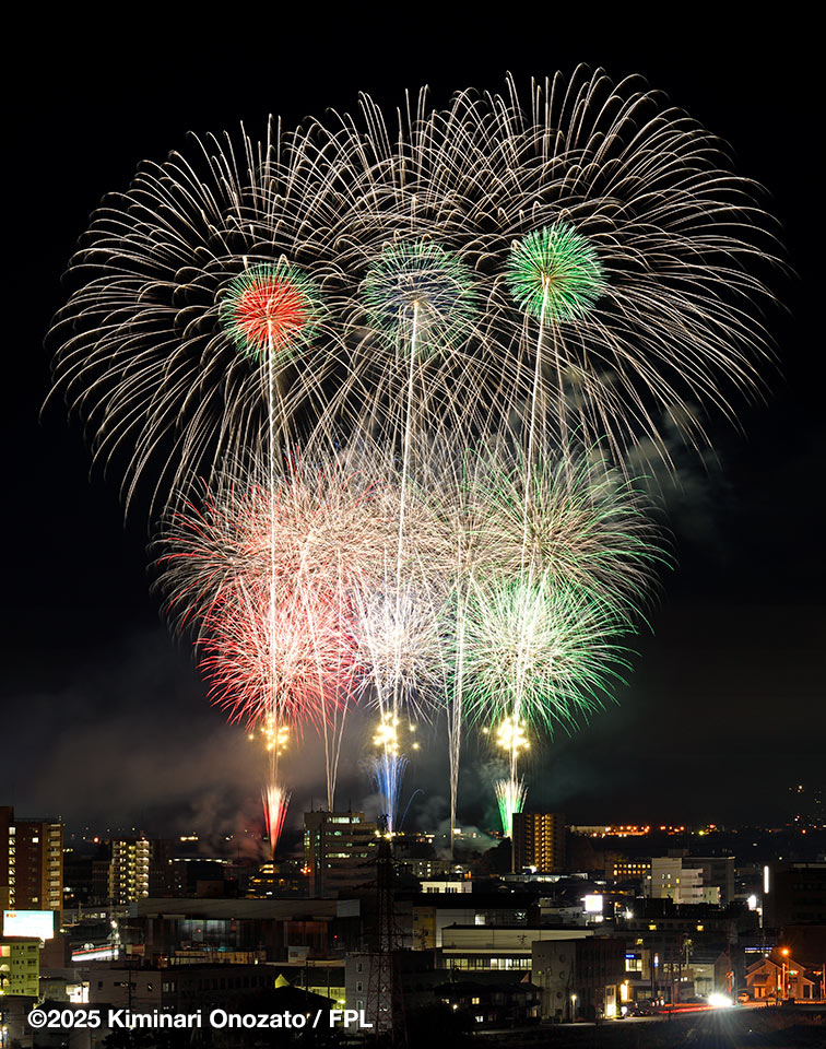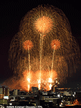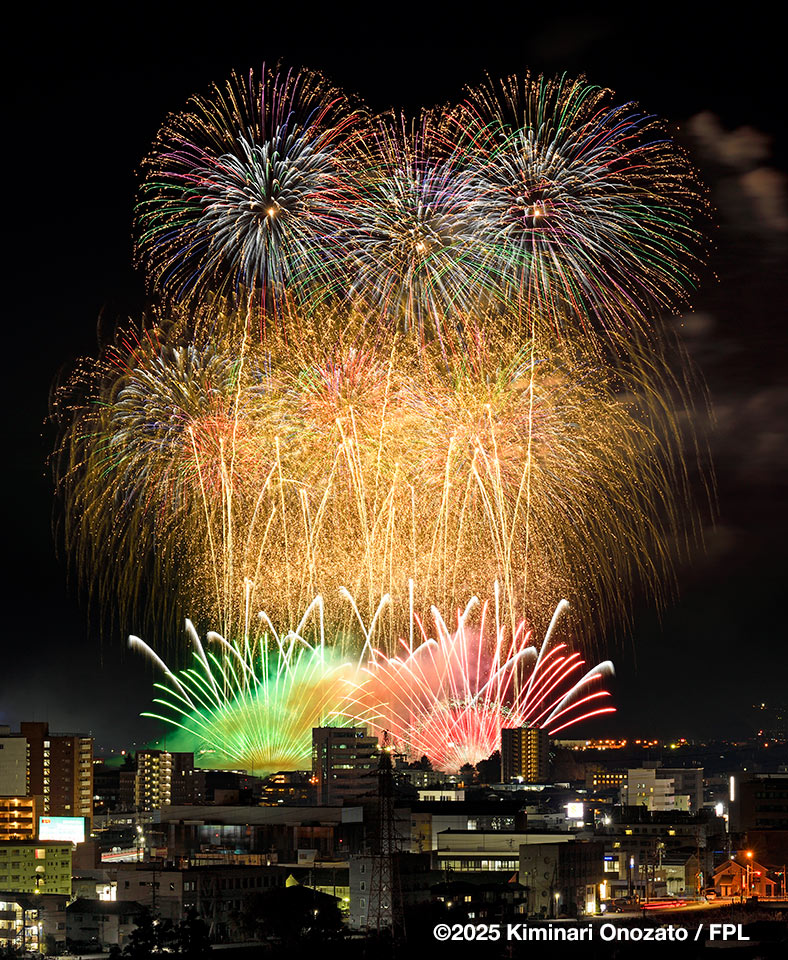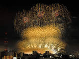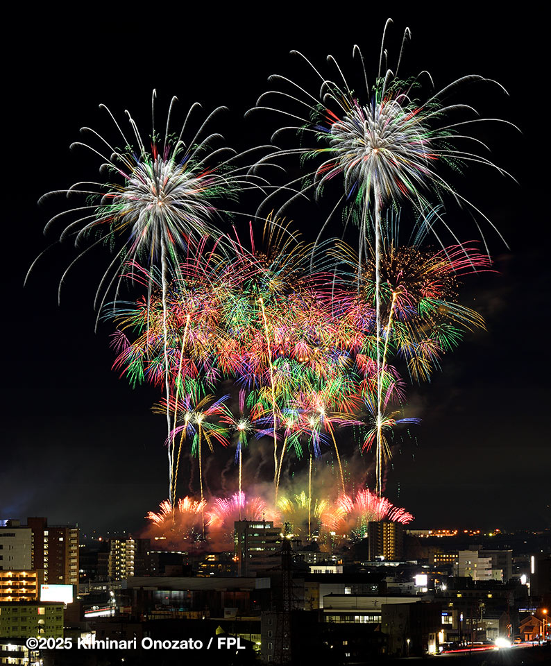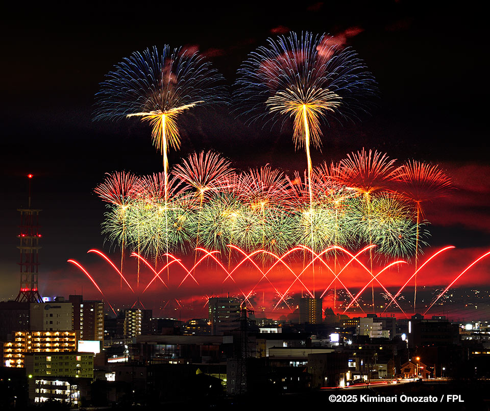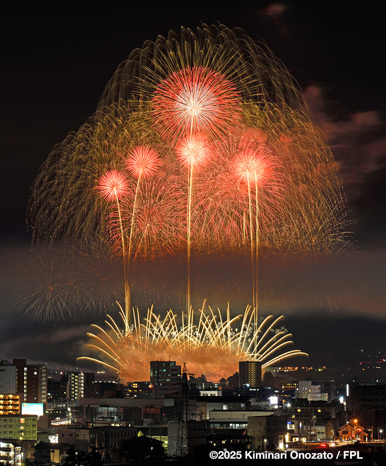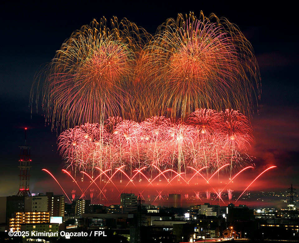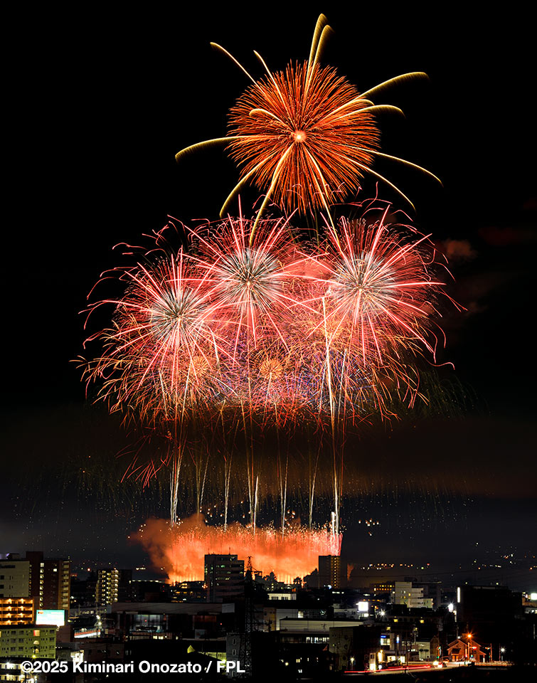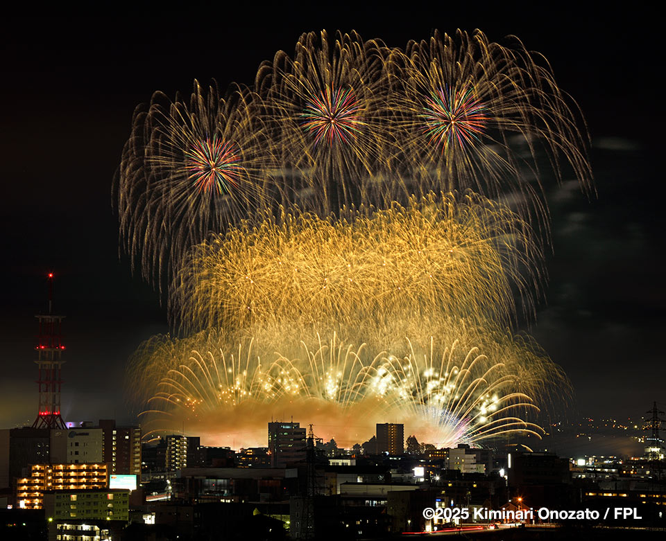 実況放送でのミュージックスターマインの楽曲のシンクロ具合が良いので、会場で観ているように楽しめた。うーん両煙火店ともシンクロ技術を競うかのような昨今の超絶テンポが速く一小節あたりの音符がめっちゃ多い楽曲を使い、一音一音に花火を見事にシンクロさせているのは凄い。けど、私的には曲自体が好みでないし、もっとスローで、雄大とか厳粛とかそういう楽曲がいいなぁ。というのも観ていて思うのは、花火玉ひとつずつを見せる、というより音符に合わせること優先で速く速くと打ち急がされているようで、この速さと単位時間あたりの物量では、点火と開花タイミングが全てで一つ一つの玉の出来なんかもうどうでもいい気がして。しかも上空に上げる玉が極端に少なく、上昇時間がかかり、開発タイミングが合わせにくい大玉は省略というわけで低空でわしゃわしゃやって終わり、という感じ。というか音符が多い曲はバラードなんかに比べればそれだけ玉数も必要だから、全体予算を考えると星打ちや小玉が多くなるのは必然か。