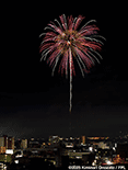 その後も最初のミュージックスターマインなど発煙の多いプログラムの煙が地上から3号、4号の開花位置に厚く滞留し次第に下の方が見えなくなっていった。これは長野えびす講ではめったに無い南混じりの風か。予報とまったく違うじゃん。この晩は気温が8度前後と長野市としては暖かい方らしい。過去の経験からえびす講はきりきりと冷え込む方が観覧条件が良いのだ。今夜はダメだな、と早い段階で諦めた。昨年がどれほどいい条件だったのか。