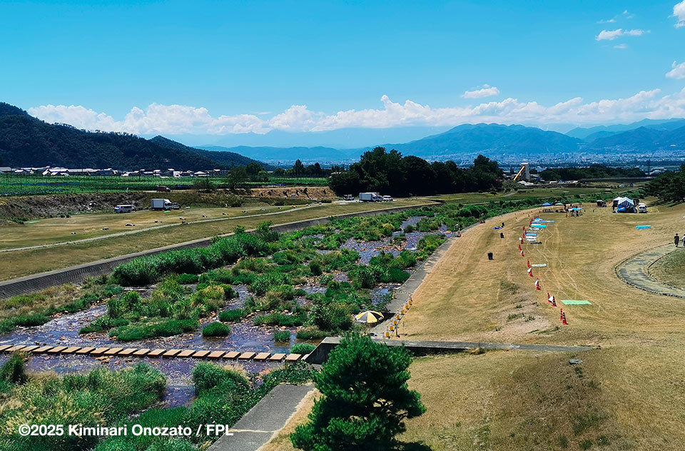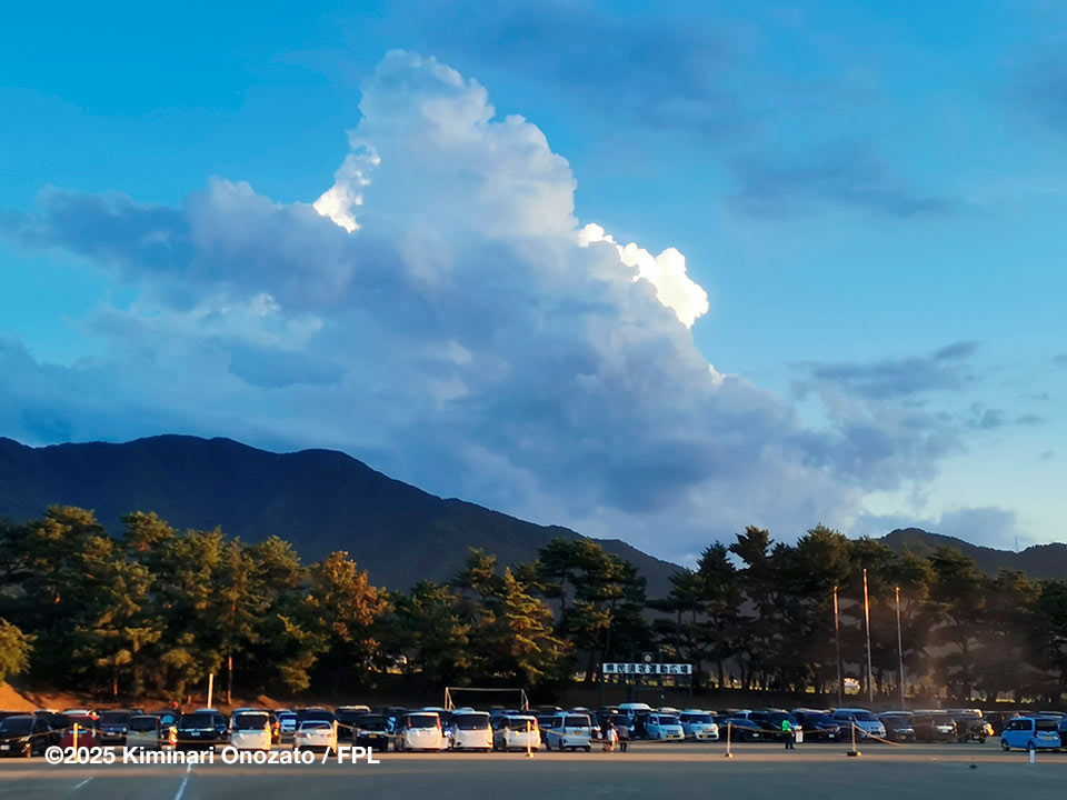 この夏、各地でゲリラ豪雨被害に遭っているが、聞けば長野市から北側はほとんど降らないのだという、打ち上げ現場の芝も青々としているはずが、陽に焼けて白っぽくなっている。ということで陽射しは一日中強烈だった。